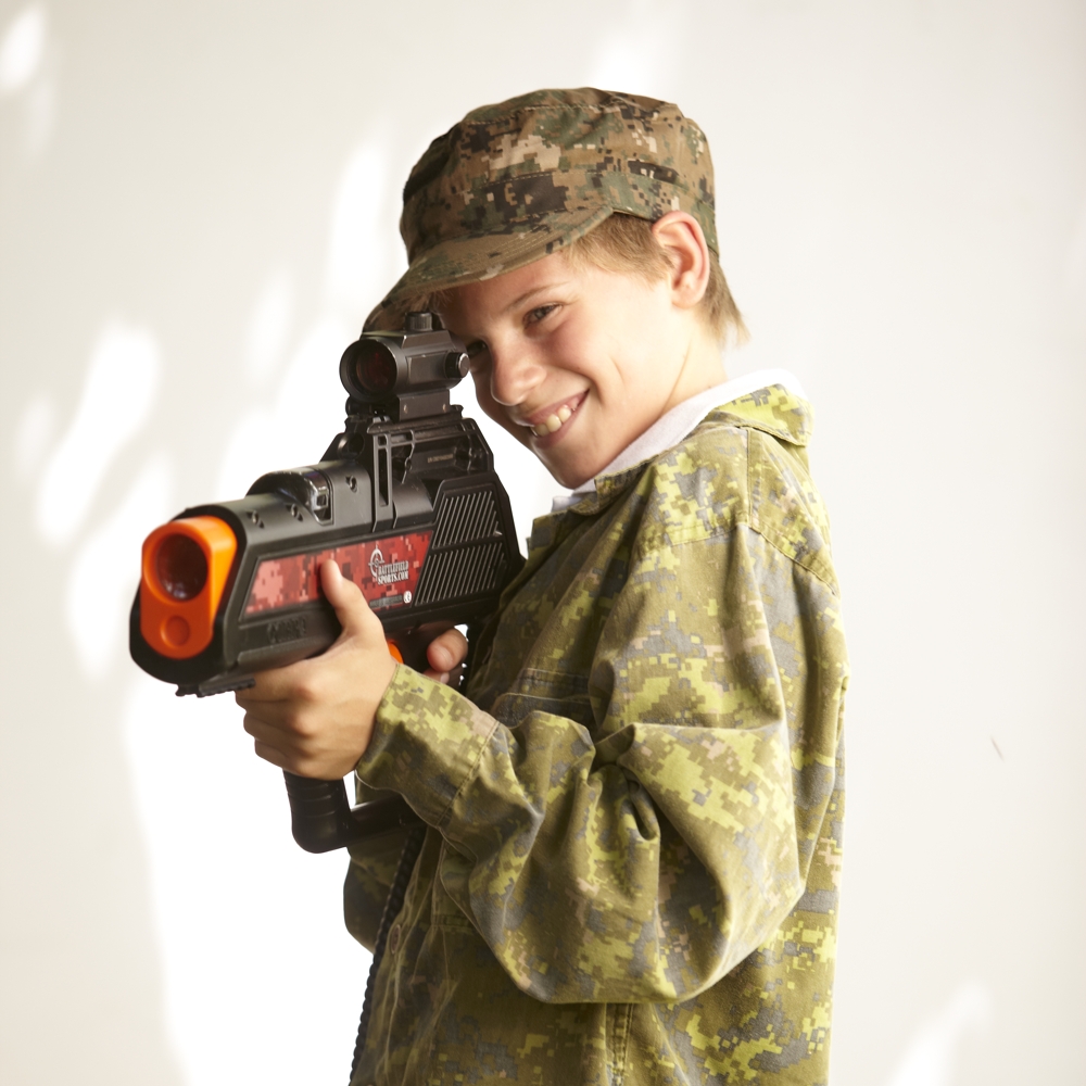In other words, Laser Tag uses harmless infrared beams (no paintballs or projectiles) so it’s completely painless and eye-safe.